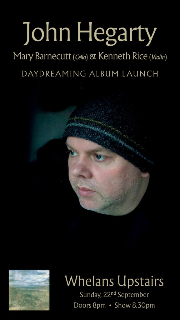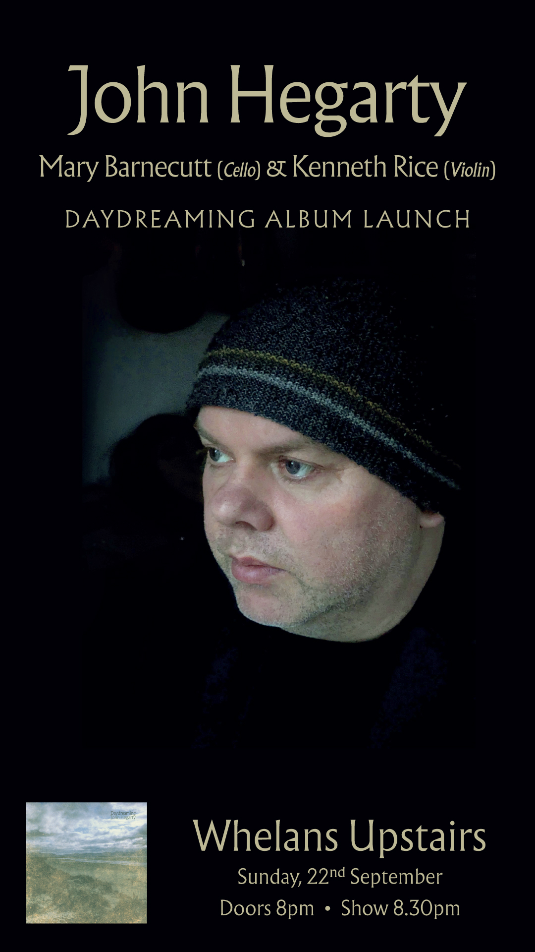 Live Events John Hegarty launches his new album, Daydreaming on Rollercoaster Records with a performance in Whelans accompanied by Mary Barnecutt on Cello and Kenneth Rice on Violin. Doors: 8pm Tickets:€15 (including booking fee) Share this: Click to share on X (Opens in new window) X Click to share on Facebook (Opens in new window) Facebook Like Loading...